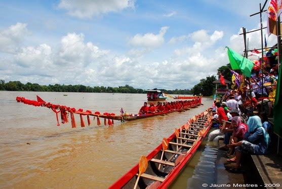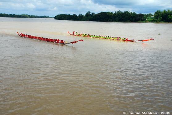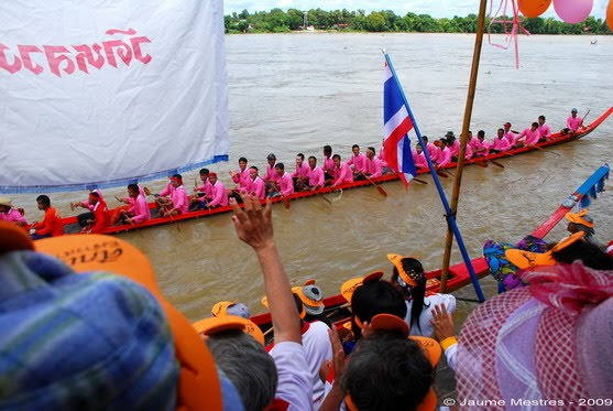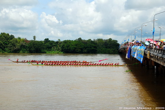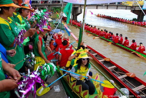 Arribo a Phibun a primera hora del matí. Al pont sobre el riu Mun hi ha una gentada abocada a les baranes. Miren la cursa de barques per celebrar l’Ók Pansà, la fi de la quaresma budista o Kaó Pansà. L’ambient a la riba dreta del Mun és embogit. Cada equip té els seus seguidors. Milers de decibels de música i alcohol a dojo. Festa pura raça, genuïnament tai.