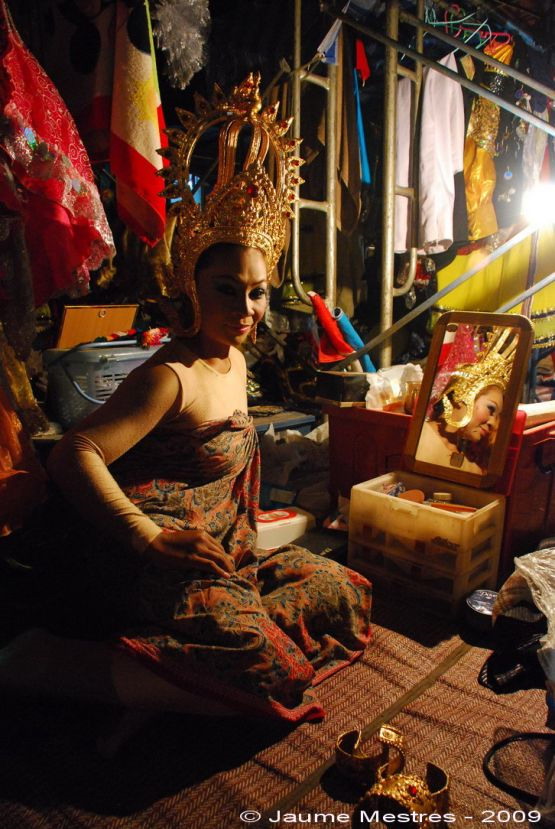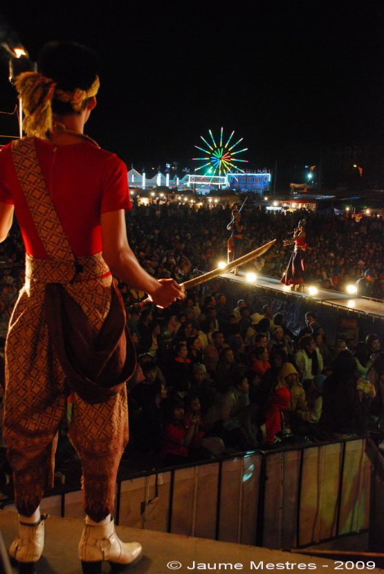 Al temple s’han afartat amb un tiberi. I jo per allà al mig, fent fotos i gravant vídeos. M’oferien menjar, però declinava em sembla que sàviament. Ja he comentat abans la qualitat del menjar de per aquí. Després han celebrat una festa davant el monestir. Un escenari muntat arran del riu. Més música, més whisky i més cervesa. Torrats completament. Noietes joveníssimes ballant amb poca roba dalt l’escenari. Els donaven diners perquè fessin postures obscenes. Com més calés, més culets enlaire i més procacitats. I jo anant fotografiant i gravant. La trompada amb la moto ja s’havia produït, però entendràs que no era qüestió de perdre’m aquest espectacle.