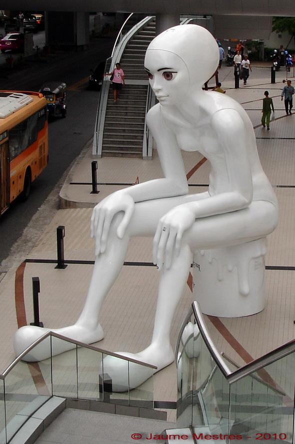 A l’habitació. Faig els exercicis pel genoll que m’ha ensenyat -via telefònica- en P. R. En acabar, fredor sobre la carn tolida uns 12 minuts. Al carrer. Com que he dinat dos cops, avui no sopo. Pujo a l’andana del BTS. Agafo el tren. Transbord a Siam. Arribo a Saphan Khwai. Baixo per l’escala de ponent. En direcció al sud. En arribar al carreró on hi ha un karaoke a prop de la cantonada (cartell vermell i blanc a la vorera anunciant-lo) l’enfilo. No hi havia entrat mai, en aquest soi. Arribo fins el final. Un atzucac. Trenco per un carreró minúscul. Passo per davant un edifici que sembla abandonat. Doncs, no. És un cinema. Malgrat l’aparença deixada diria que funciona. Llums exteriors apagats per estalviar. Un vidre llueix un 50 immens. El preu de l’entrada: un euro. Un cinema de barri que sens dubte caurà aviat. Al solar hi faran pisos. En pocs anys, Saphan Khwai s’ha transformat. Es revaloritza a gambades de gegant. Vaig avançant per un laberint de carrerons. Em moc per un soc oriental en miniatura. Restaurants portàtils -carretons amb rodes- que fumegen. Esbraven sentors. Fragàncies barrejades. Fortors d’olis cremats. Verdures, cloïsses, gambes i carn picada espetegant amb alegria dins la suau concavitat dels wok. Molta gent sopant a l’entorn de taules plegables. Ocupen els carrers. Un dia qualsevol i sembla festa major.