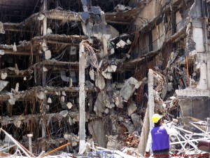 Visito els escenaris de les recents batalles campals i algun dels edificis cremats. Els incendis impressionen més del què pensava. Havia de fer molt efecte veure monstres de vidre i formigó envoltats de flames.