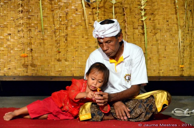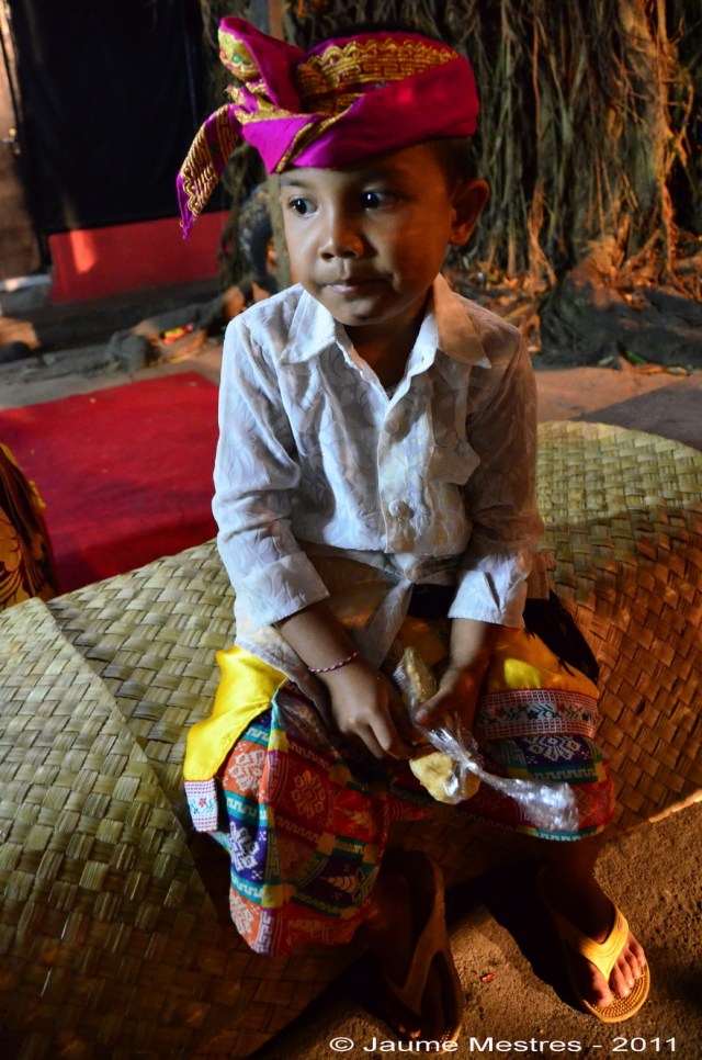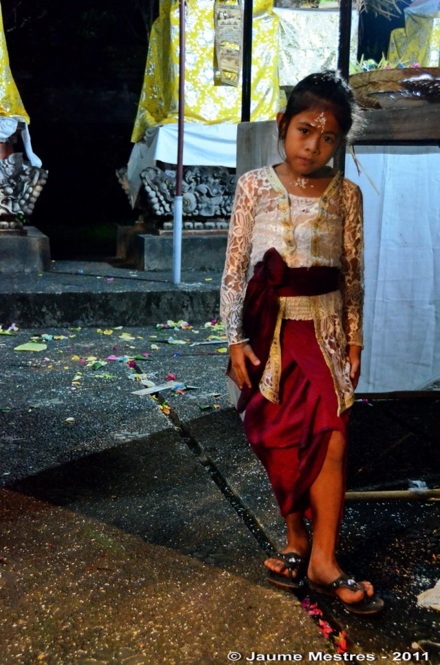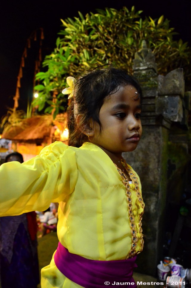 Cada 210 dies els balinesos celebren una cerimònia o odalan en un dels temples del seu barri o població. Són cerimònies festives que serveixen per donar gràcies, demanar sort i proteció als déus i esperits que els governen. Abans d’ahir i ahir al vespre (27 i 28 de juliol, respectivament) vaig participar de les cerimònies que van celebrar-se al temple Pura Keloncing, al nord del vilatge Padangtegal, al municipi d’Ubud. Vaig compartir sopar, dolços, tes i cafè amb la comunitat del vilatge. També vaig participar de les pregàries col·lectives al clos més sagrat del santuari, davant les torres on seuen els déus custodiats per soldats de pedra. Envoltat de fidels, ombrel·les, torres d’ofrenes amb fruita i animals empalats. Després, vaig escoltar l’orquestra de gamelan i fruir de les danses. Les fotografies són testimoni del record d’aquests dos darrers dies.