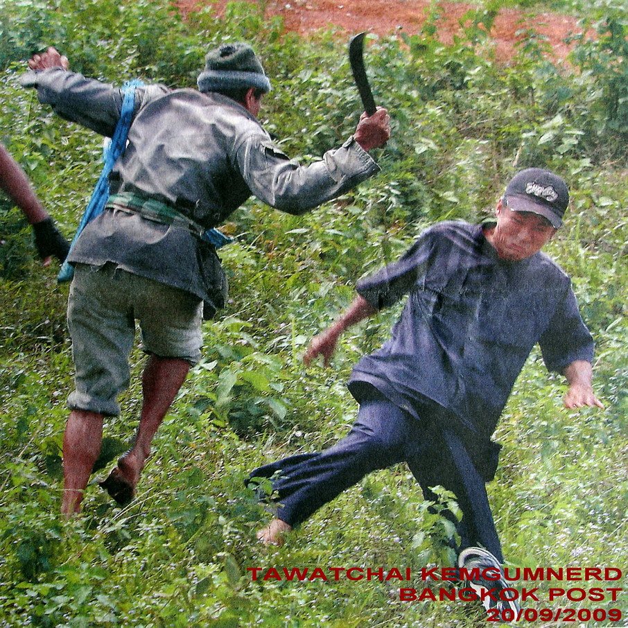 Fotografia publicada al Bangkok Post del 20 de setembre de 2009 sobre els fets de Phum Saron. Província de Si Saket. Nord-est de Tailàndia.