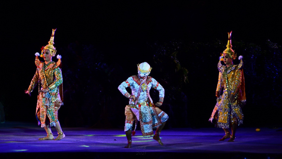 El Khon és una modalitat teatral tailandesa que combina diferents disciplines artístiques. La dansa, les arts marcials i la declamació són la base damunt la qual se sosté la història que es representa. Els moviments actorals sempre s’acompanyen amb els sons d’una orquestra composta d’instruments tradicionals. En una representació Khon s’hi declama, s’hi balla, s’hi lluita i s’hi canta. Les obres són representacions d’històries clàssiques de l’hinduisme adaptades a l’imaginari tailandès. L’origen del Khon es remunta al segle XVII. Una representació de Khon és farcida de moments èpics, lluites i batalles protagonitzades per herois, déus i dimonis. Les imatges corresponen a una representació de Khon a càrrec del Teatre Reial Chalermkrung, la millor companyia del país. Els actors, les actrius i músics que veiem entre bambolines i en escena són la flor i nata del teatre clàssic tailandès. Recomano mirar el vídeo enllaçat al final del reportatge. Hi veureu més de 30 minuts d’excel·lent teatre Khon.