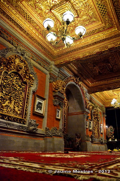 Visitar el palau d’Ubud per dins no sempre és a l’abast. Solament s’hi pot accedir en comptades i excepcionals ocasions. Aquest passat mes de juliol, amb motiu dels fastos que van seguir el decés d’un dels membres de la família reial, les portes de palau van obrir-se a convidats i personalitats els dies previs a la incineració o pelebon. El cos del difunt era en una de les sales obertes custodiat per la serpent sagrada Naga Banda. Els convidats ens podíem passejar a discreció per la residència palatina mentre anaven desenvolupant-se cerimònies i pregàries. Entre xarrups de te, tast de pastissets i en l’interval de pantagruèlics àpats vaig dedicar-me a fotografiar pavellons i dependències. Sense presses, a glopades petites, intercalant l’exercici de la fotografia amb l’audició d’orquestres de gamelan, la contemplació del teatre d’ombres i un escollit repertori de danses tradicionals ofertes pel gaudi de l’audiència i l’ànima del finat.