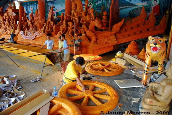 I el nord-est, l’estimat Isan, la terra -la gent- que m’ha robat el cor. Isan és l’esperit, la festa i, de vegades, també la fam. En el passat, Isan formava part del gloriós imperi Khmer. D’aquí que el sòl d’Isan sigui sembrat de temples d’aquella època. Temples construïts aproximadament ara fa mil anys. Quan a la nostra terra floria la sobrietat de l’art romànic, per aquí es bastien els temples més sensuals que ha vist la humanitat. Pedres brodades amb cisells. La joia de viure expressada als carreus modelats per les mans d’una gent sàvia. La irradiació d’Angkor -a un tir de pedra- va produir santuaris memorables. Com Phanom Rung o Phimai, per exemple. Però més enllà d’aquestes dues gemmes hi ha els templets modestos, els amagats, els que es visiten poc per la seva ubicació remota o conflictiva, com Khao Phra Viharn, alçat en terra cambodjana, però que Tailàndia reivindica. Aquest és un altre dels conflictes calents que afronta en aquests moments Tailàndia.