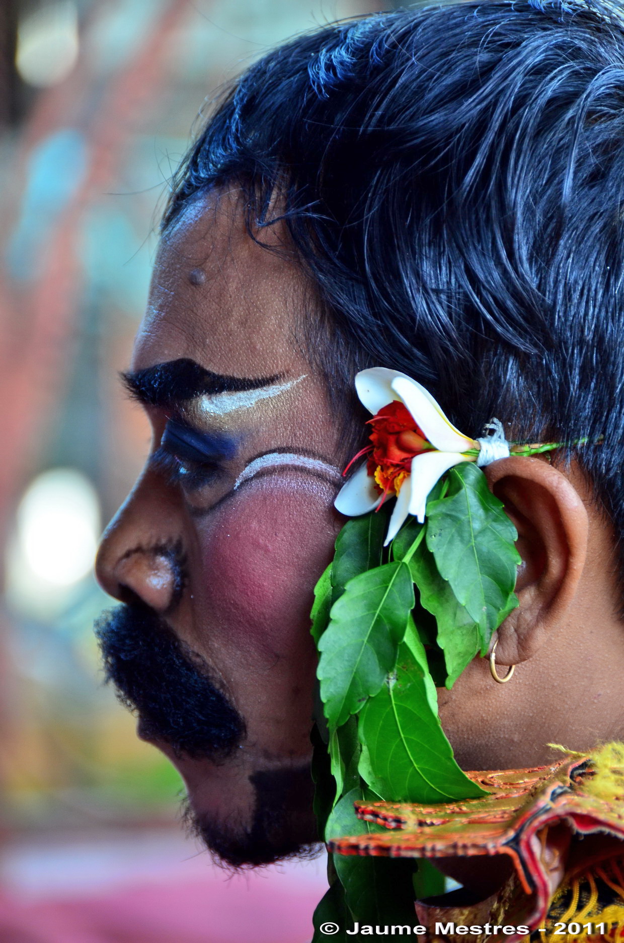 I Kadek Adi Mahendra és un ballarí que conec des que era infant. Viu al vilatge Abianbase, a Gianyar. De molt menut el seu pare va començar a portar-lo al Museu de les Arts Agung Rai (ARMA) de Padangtegal, Ubud. Pak Agung Rai, el propietari del museu i esplèndid centre cultural, és un mecenes balinès que consagra la seva vida a l’art i la cultura de Bali. Des de la creació del centre es manté fidel als principis que van moure’l a promoure un dels bastions més importants d’irradiació de cultura balinesa. Una de les activitats és l’ensenyament de dansa i música de gamelan als nens i nenes balinesos. Tres vegades a la setmana les famílies interessades porten les criatures a l’ARMA. Els nens aprenen dels millors professors i professores d’Ubud. L’ensenyament és gratuït, Pak Agung Rai es fa càrrec de totes les despeses, com ara el sou dels mestres i els àpats durant les hores que imparteixen classes. També proveeix uniformes pels menuts i els promou quan han aconseguit els coneixements suficients. Mahendra és un dels excel·lents fruits d’aquesta labor de Pak Agung Rai. El jove Mahendra està especialitzat en la dansa amb màscara Jauk Manis i la dansa Baris. Les fotografies van ser preses a les instal·lacions de l’ARMA un vespre de diumenge, abans i després de l’actuació del ballarí Mahendra, al wantilan o escenari de pedra del museu. Un teatre a l’aire lliure magnífic, que lluu especialment de nit. Si sou a Ubud, o teniu programat anar-hi, podreu gaudir de l’actuació del ballarí Mahendra, a l’escenari de l’ARMA, els diumenges al vespre.