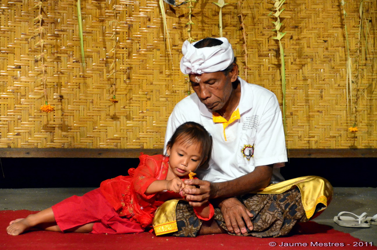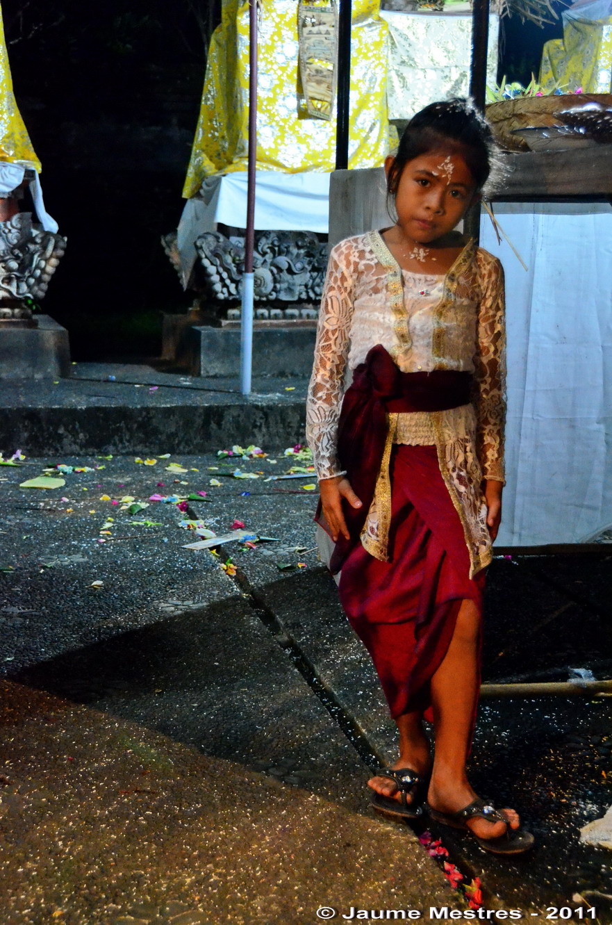 El 26 de juliol de 2010 van començar les celebracions per a commemorar l’aniversari del temple Pura Dalem Agung d’Ubud, santuari ubicat al cor del Bosc dels Micos (Alas Bojog, en balinès), conegut popularment, per natius i forasters, com Monkey Forest. A partir del vespre del dia 10è, arribada la llarguíssima processó de fidels, el temple va farcir-se de celebracions litúrgiques carregades de simbolisme. Van haver-hi un munt de danses, una de les quals va ser la que mostra el vídeo. Un estol de nenes va ballar una composició deliciosa per glorificar i satisfer els déus que vetllen pel benestar del poble balinès. Déus i deesses que durant l’aniversari del temple Pura Dalem Agung van baixar del cel, van emergir dels llacs i descendiren dels volcans per ser presents a les festes, acompanyant i beneficiant els fidels que els honoraven.